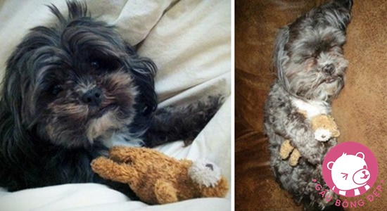 Khi chó mèo chỉ thích ôm gấu bông đi ngủ
